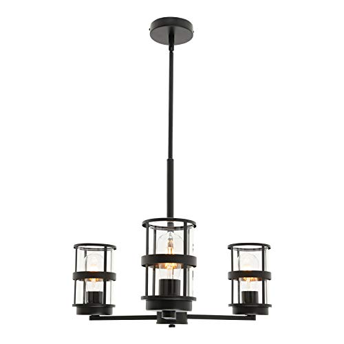indiamart ELUZE Farmhouse Chandelier Kitchen Island Lighting, 3 Light Vintage Pendant Light Fixture ,Black Clear Glass Shades Industrial Metal Dinning Room Chandeliers for Hotels Hallway Living Room